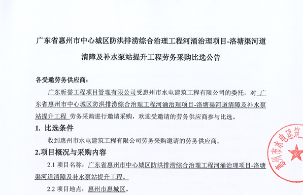 廣東省惠州市中心城區(qū)地下管網(wǎng)系統(tǒng)提升工程-內(nèi)街小巷排水管網(wǎng)病害修復及錯混接改造項目一期施工勞務(wù)采購(第二次)中選候選人公示……